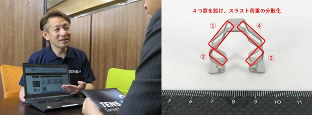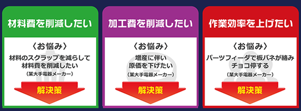 板ばね・線ばねの製造工程においては、従来の形状からわずかな仕様変更を行うことで、軽量化、コンパクト化など、多機能付加が可能となります。当社では、お客様の求める製品形状を実現することはもちろん、お客様が部品に求める強度や機能面を充分に考慮した製品設計や、多岐にわたる機能性向上提案を行っています。
